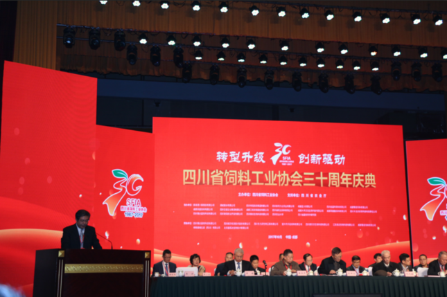 四(sì)川省饲料工业协会迎来三十(shí)周年华诞。省(shěng)内各饲料单位(wèi)、科研院所以及省外兄弟协会齐聚一(yī)堂,共庆生日。 四(sì)川旺达作为副会长单位应邀出席此次盛会。