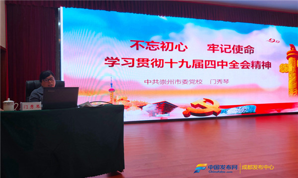 中(zhōng)国(guó)发布网成都讯(丁志学) 12月12日上午(wǔ),崇州市个私党工委在四川旺达集团召开学(xué)习贯彻党的十九届四中全会(huì)精神专题(tí)党课报告会。崇(chóng)州市委党校副校长(zhǎng)门秀(xiù)琴应邀(yāo)作了《不忘初心(xīn)牢记使命学习贯彻十九届四中全会(huì)精神》的专题报(bào)告。会议(yì)由个私党工(gōng)委委员柯蓉主持。个私党工委所属37家会员企业党支部书记、党员代(dài)表共计43人参加会议,并参观了旺(wàng)达公司党群活动室、优秀员工事迹展(zhǎn)示、宣(xuān)传(chuán)走(zǒu)廊(láng)等,听取(qǔ)了旺达公司董事长、党支部书记唐志伟,总裁办主任张小娟介绍的公司党建和关心下一代工作。